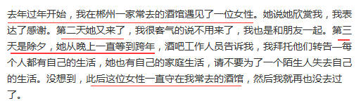 1、去年第一次遇到该名女性,此后该女性长期守在与刘同相遇的酒吧。