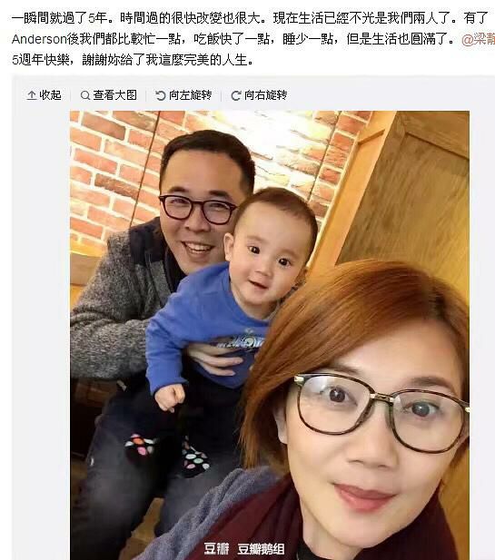 个人社交网站上,也是秀孩子比较多,很少有和妻子的亲密合影。