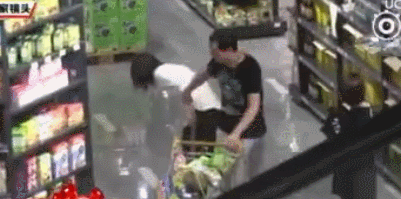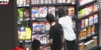 没想到的是,小爽钻空子摆脱爸爸之后,又回到了原本的架子前,开心地挑选食物。