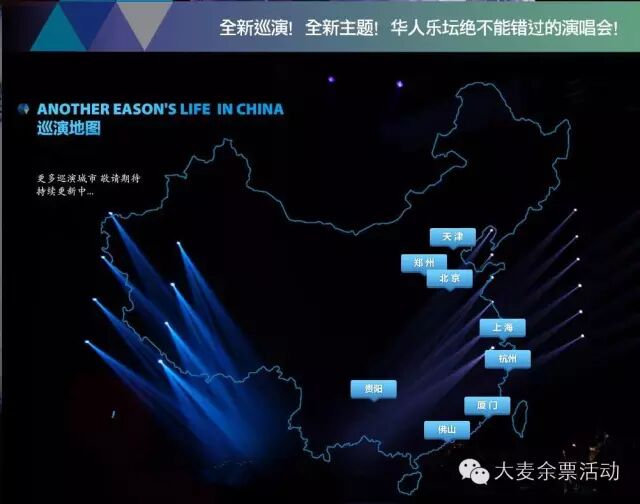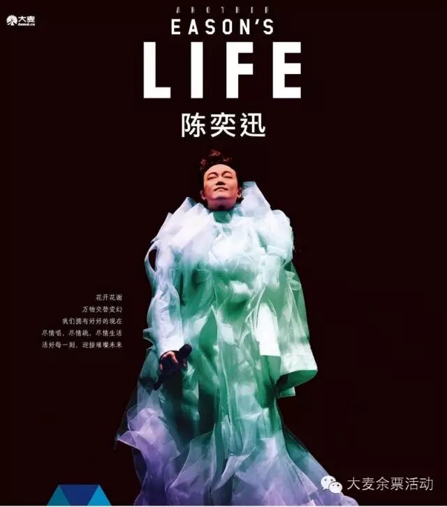 Another Eason’s Life 全国巡回演唱会 终于来了! 麦子粉丝团拿出16张内场票无偿送给大家,先到先得!! 是不是很激动! 演唱会时间表如下: 2016陈奕迅Another Eason’s Life演唱会 佛山站 2016.04.23 周六19:30 佛山世纪莲体育中心 2016陈奕迅Another Eason’s Life演唱会 厦门站 2016.04.30 周六19:30 厦门体育中心体育场 陈奕迅 ANOTHER EASON’S LIFE 演唱会-上海站 2016.05.07 周六19:30 上海体育场 陈奕迅Another Eason’s Life 演唱会-杭州站 2016.05.14 周六19:30 黄龙体育中心(体育场) 陈奕迅 ANOTHER EASON’S LIFE演唱会-郑州站 2016.05.21 周六19:30 河南省体育中心 陈奕迅 ANOTHER EASON’S LIFE演唱会-天津站 2016.05.28 周六19:30 天津奥体中心体育场 陈奕迅 ANOTHER EASON’S LIFE演唱会-贵阳站 2016.07.02 周六19:30 金阳奥体中心 陈奕迅 ANOTHER EASON’S LIFE 演唱会-北京鸟巢站 2016.10.22 周六19:30 国家体育场 粉丝福利: 拿到幸运门票的粉丝请留意短信内容, 麦子将在3个工作日内 顺丰快递寄出你就近城市的门票2张! 一共8个幸运名额(每个名额2张门票),赶紧来参报名!! 活动时间:3月3日到3月30日15点整 报名入口:点击本文最后的“阅读原文”