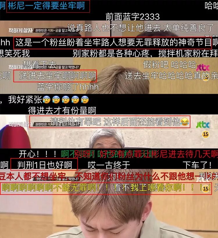 不过玄彬被宣判无罪的时候,弹幕都是“让他进去吧”、“哪怕判一天也行啊”,哈哈哈是不是没被爱豆打过。
