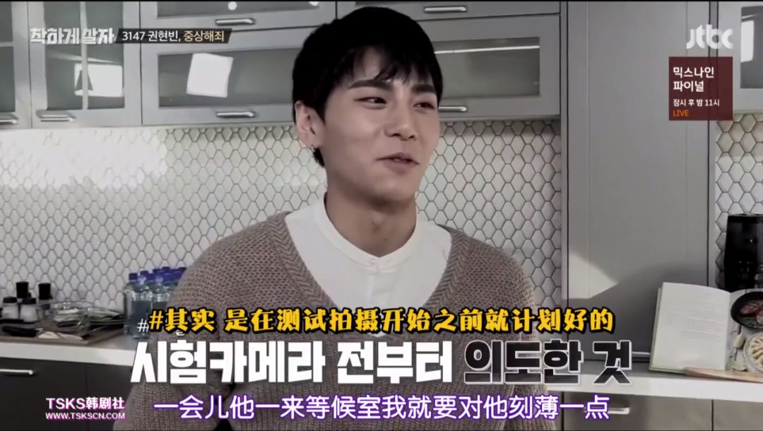 刚才说到的权玄彬简直是单纯的代名词,节目组为了套路他联合了JBJ成员们弄了一个假的美食节目,一张饼就把他送进来了。