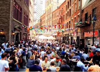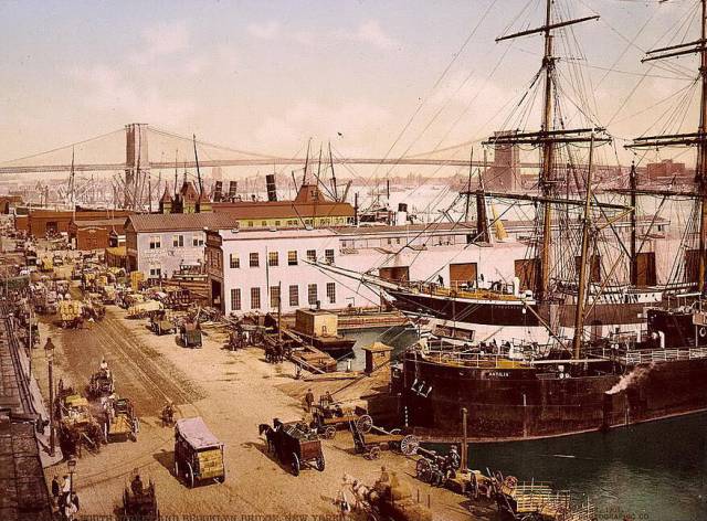 满是历史建筑的标志性海滨区,开放空间可见布鲁克林大桥,东河对岸即是布鲁克林。是纽约市19世纪早期商业建筑重建项目最集中的地方。