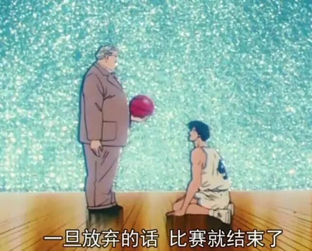 “放弃的话,就等于比赛结束了”,安西教练的一席话不仅点醒了三井,还成为激励无数人的座右铭