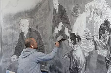 从《侠客行》开始,井上老师就开始用毛笔作画