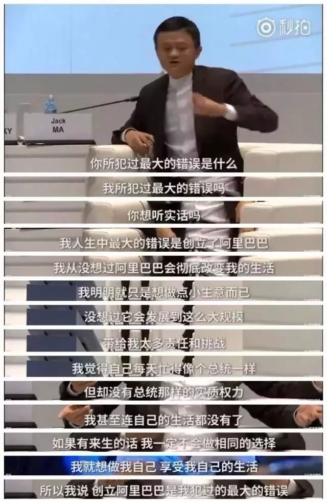 2016年,马云在俄罗斯圣彼得堡国际经济论坛上发言,表示创立阿里巴巴是自己人生最大的错误。