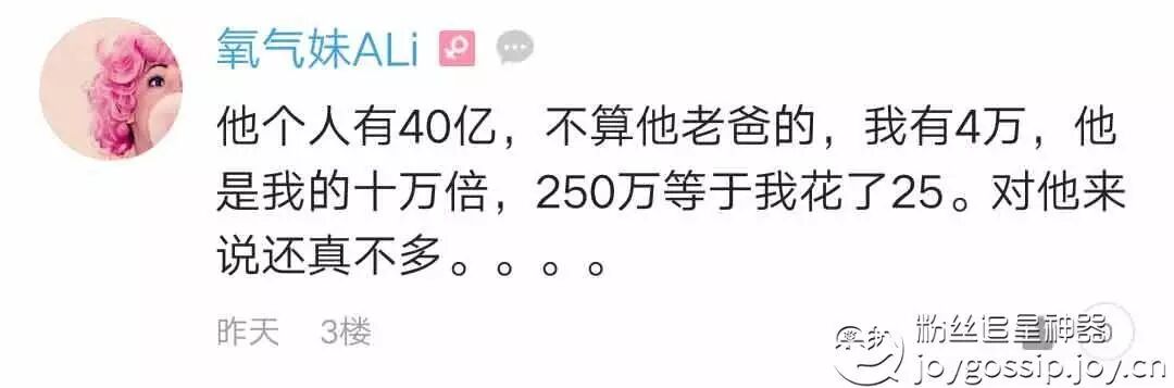 前两个是颜的代表,第三个是钱的总攻。虽然王少平时装疯卖傻像个屌丝,壕起来真令人春心荡漾,他的购物单足够跪舔了。