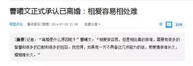 在与陈思成分手之后,曹曦文嫁给了一个富商,做起了名副其的豪门太太,但是在生下一个女儿之后,曹曦文却与富商的缘分走到了尽头。孩子归自己抚养,自己做起了单亲妈妈。