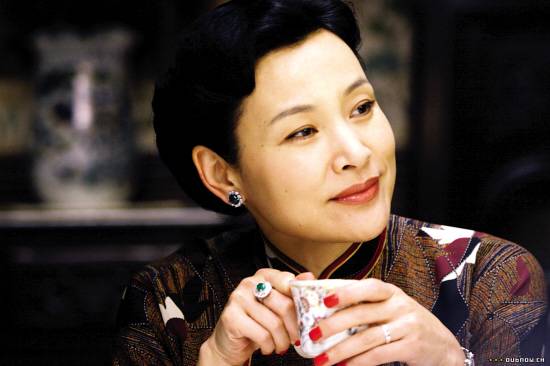 《色戒》里的端庄睿智的易太太,戴着翡翠戒指、宝石耳环,官太太感十足。