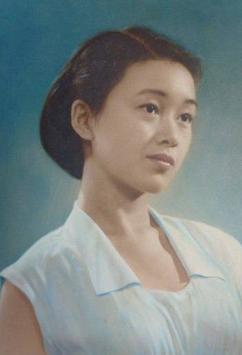 (陈冲母亲年轻旧照,那时照片是黑白照,陈冲透露这个照片是自己父亲亲自冲印,染色的。)