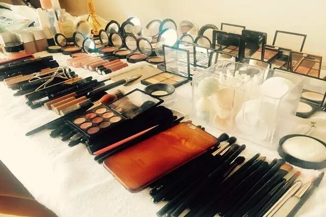 为了此次的杂志拍摄,化妆团队准备了最齐全的装备,这满满一桌子是不是很震撼~