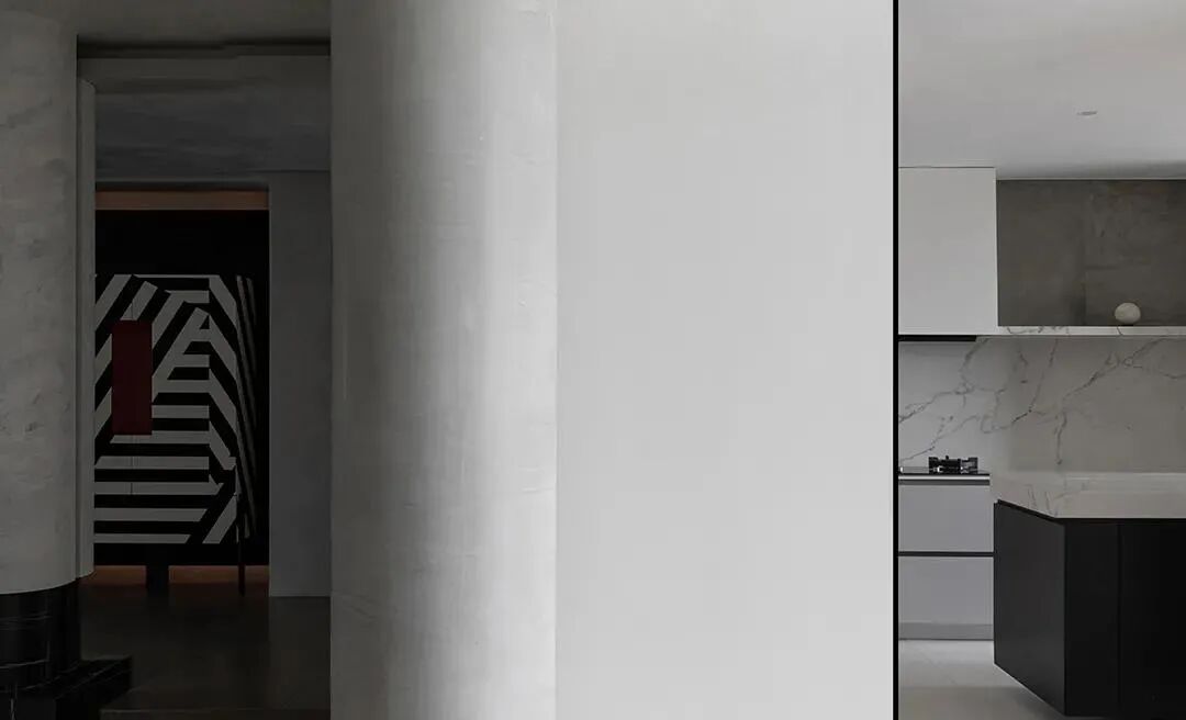 白色的墙壁上暗藏着浪花祥云般的纹路