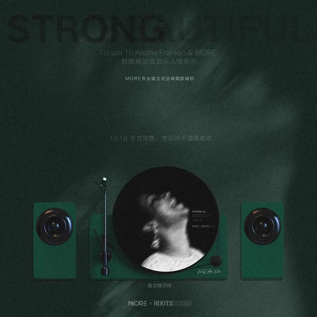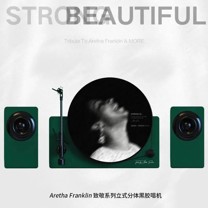MORE联合ROOTSHOUSE设计致敬Aretha Franklin系列专业级立式分体黑胶唱机,期待大家通过黑胶专辑重返Aretha Franklin经典现场,在黑胶的旋转中享受Queen of Soul的音乐魅力。