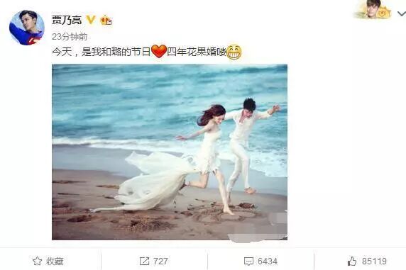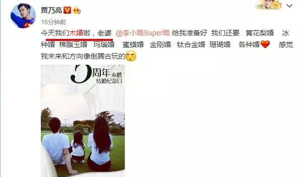 贾乃亮和李小璐结婚五周年,近日他们在微博分享自己的结婚纪念日庆祝照片。真的是太甜啦~