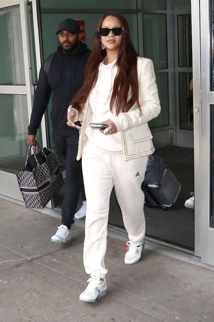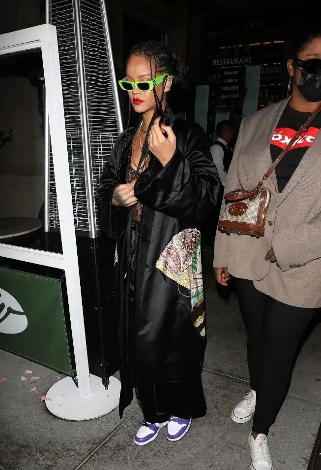 当年Rihanna有了第一胎,和老公Rocky首次出镜的时候上脚的这双CPFM x 施华洛世奇 x Nike Dunk,甚至比她肚子里的孩子更吸引人眼球了... 毕竟这三方联名驾驭后的光芒实在过于耀眼,如今的价格更是7w+令人瞠目结舌...但细想一番,17亿美元身价的女企业家,这都是洒洒水的事情了。