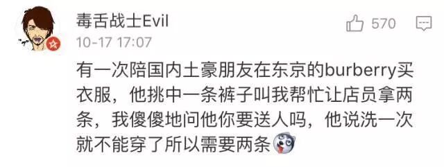 这两天有一篇文章爆版,叫《贫穷限制了我们的想象力》,内中说,有个姑娘买了一件35000的香奈儿衣服,干洗之后褪色了。去店里投诉,店长说:我们这衣服都不考虑洗的……因为都是一次性的。