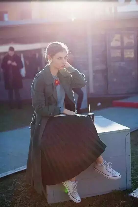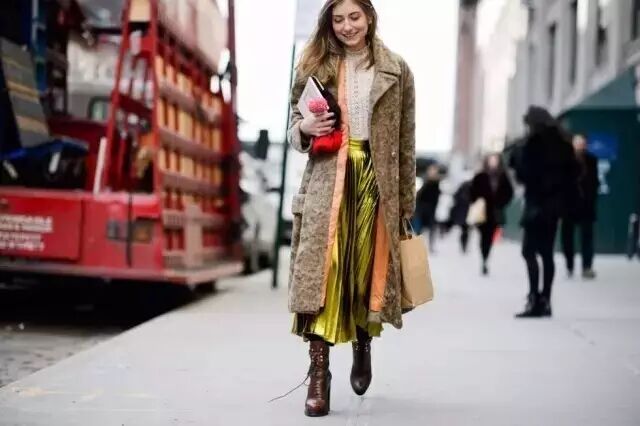 到了冬天,大衣便成了女生实用且好看的选择之一。纯色系的百褶裙搭上性冷淡风 normcore 的冷色调或者大地色的大衣,两者不仅可以完美融合一起,而且在搭配中能够凸显整体的层次感,cool cool 的大衣配以稍有俏皮的百褶裙款,令你走在街上成为焦点。