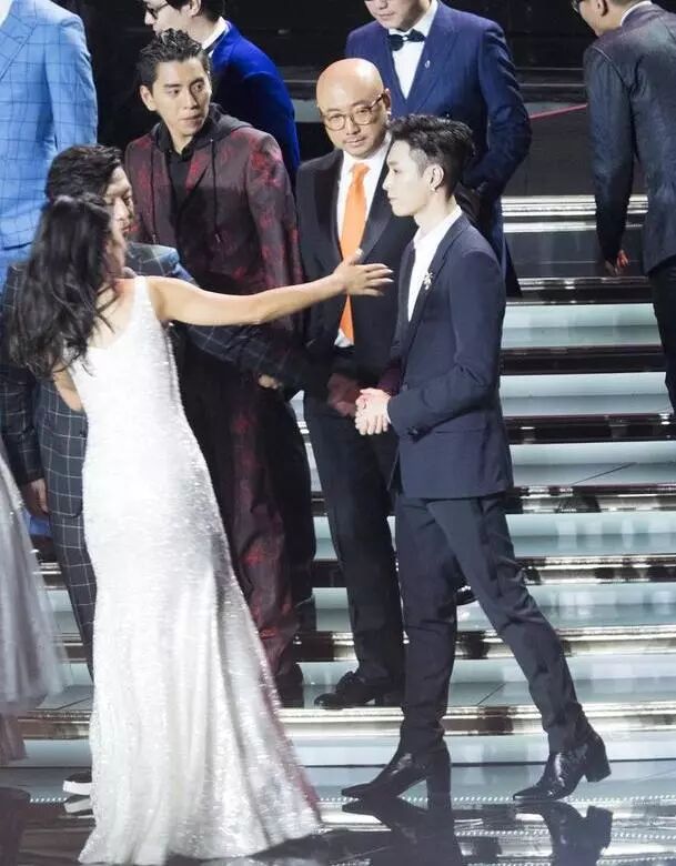 跨年演唱会上,大概是为了减少和高个林志玲同框的尴尬?高跟鞋穿在脚没在怕的啊,虽然最后还是没有林志玲高...