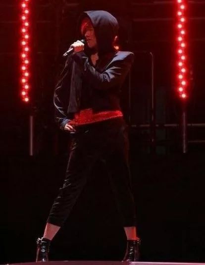但看起来张杰穿着高跟鞋还是很身轻如燕的,在舞台上旋转跳跃完全毫无鸭梨。