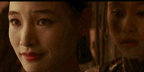 英文版本的念白不禁让F想起《末代皇帝》里的陈冲,婉容红盖头被掀开的那一刻,美得让人挪不开眼,吞咽花瓣时的绝望凄苦更是令人动容,不忍见她孤影自怜,香消玉殒。