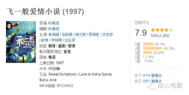 很多人都觉得看港产片就是看演员,但这部片子的对白和情节倒是挺有趣的。叶锦鸿的电影虽然文艺气息颇浓,在一些小细节上却处理的极其有趣。其中王喜所客串的主持xx节目的电台DJ和刘以达所扮演的那个浑身不停发抖的xx专家,是影片中让人忍俊不禁的一个亮点。他们夸张搞怪的表演虽然荒诞,却像一个引爆点,“砰”的一声引爆几个人的热情。此类有趣的噱头尽管不免带着些许的商业味道,但叶锦鸿却能聪明得使之不流于俗套,也算难得。