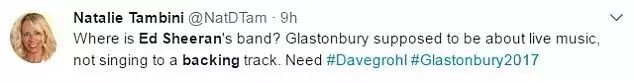 「Ed Sheeran 的乐队在哪儿?Glastonbury 是现场表演的舞台,不是背景伴奏的。」