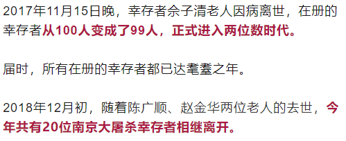 12018年,登记在册的南京大屠杀幸存者,已不足百人