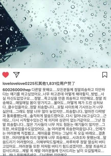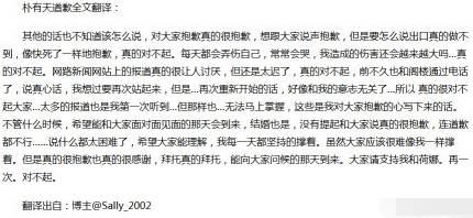 看到自己的未婚妻被网络暴力攻击, 朴有天在社交软件发了很长的一段文字,表达了对粉丝的歉意。