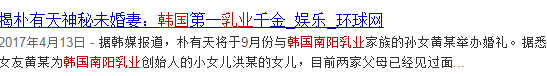 在今年4月的时候,朴有天被曝出和外圈女友黄荷娜交往,还是个白富美。也有报道说黄荷娜是南阳乳业创始人的外孙女。