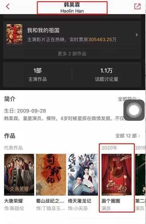 据悉,由泛太平洋出品的影片《画个圈圈》中,我们还会看到韩昊霖的身影,《画个圈圈》由王子鸣导演执导,“九亿编剧”张炭的又一力作,预计今年情人节与观众见面。目前第一出品方为了上映前的宣传,释放出了少量的该片份额,小编这里给出大家官方的参与渠道,感兴趣可随时骚扰。让我们期待一下韩昊霖的精彩表现。