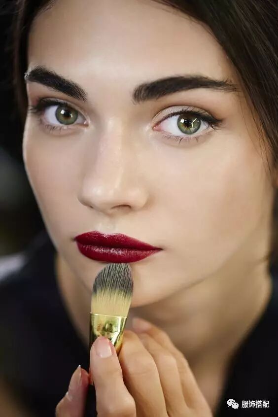 如果安利了这么多你还是犹豫深色唇涂不出门,那你大可尝试用咬唇妆的画法。在整个唇部使用红色唇膏,然后在嘴唇内侧用深色唇膏,或者将深色的唇膏只涂在双唇中间,增加唇部的层次感。