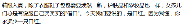 哑光唇膏虽然高级又保险,但是它对唇部的非常高,如果你在唇部肌肤极度干燥的情况下涂哑光唇膏,呈现出的“东非大裂谷”情况会非常煞风景,只有以滋润的唇部为前提,哑光唇膏才能发挥出最好的效果。