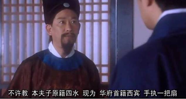 华夫人原本要给唐伯虎赐名叫“华胜”,唐伯虎立刻大呼“不敢不敢”,然后进书房后就跟老师来了一段港式黑社会抢地盘的对白,