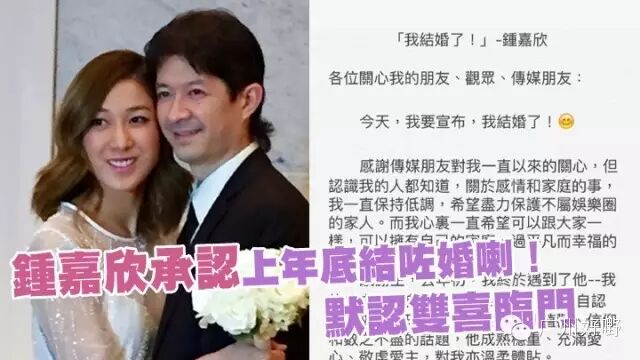 今日嘉欣BB就向传媒证实,女神真的结婚了