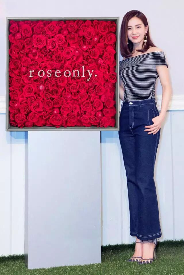 刘诗诗穿一字肩条纹上衣搭高腰喇叭牛仔裤,脚踩印花高跟鞋,优雅大方又女人味十足。