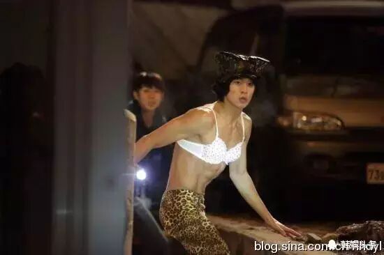 是的你没有看错,wuli高冷冰山都教授也会男扮女装!而且一点不输金希澈,还外加了Bra。该照片来自电影《伟大的隐藏者》,剧中金秀贤饰演一名朝鲜的间谍,在韩国从事卧底工作,片中许多惊险片段之外,搞笑不断。其中一幕金秀贤为躲避追杀,一路奔跑、变装,结果穿上女性内衣、豹纹内搭裤的爆笑演出,让人忍俊不禁。