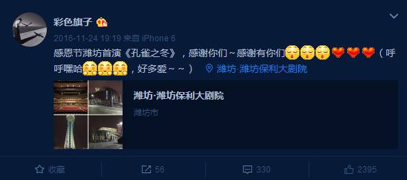 春晚之后,彩旗也依旧坚持她热爱的舞蹈,虽然也有演戏,但更多的是以舞蹈练习为主,微博上的动态也多以分享巡演为主。