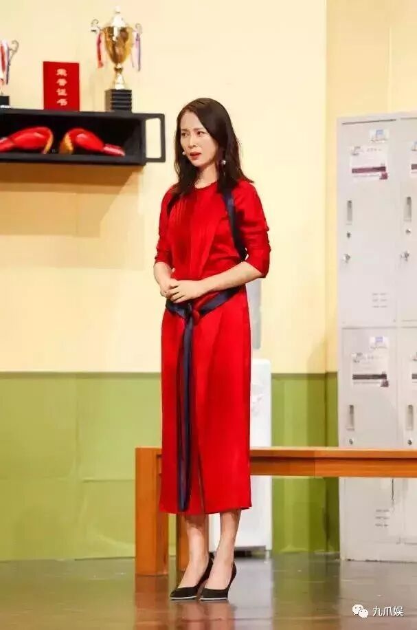 江一燕的其他造型也是美美的,身穿一款红色长裙十分艳丽动人,脚踩一双黑色高跟鞋与黑色的带子呼应,看起来十分有知性美。