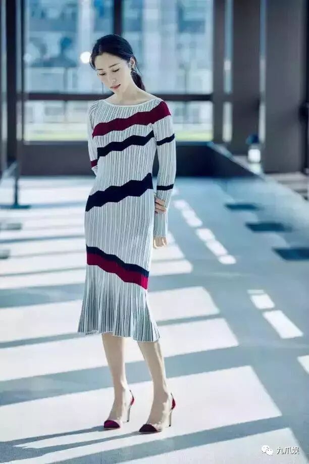 江一燕身穿一款条纹百褶长裙,尽显优雅与气质,脚踩一双酒红色高跟鞋也很有女人味,扎起一款低马尾也很能凸显出她的气质。大家喜欢江一燕吗?欢迎评论留言哦