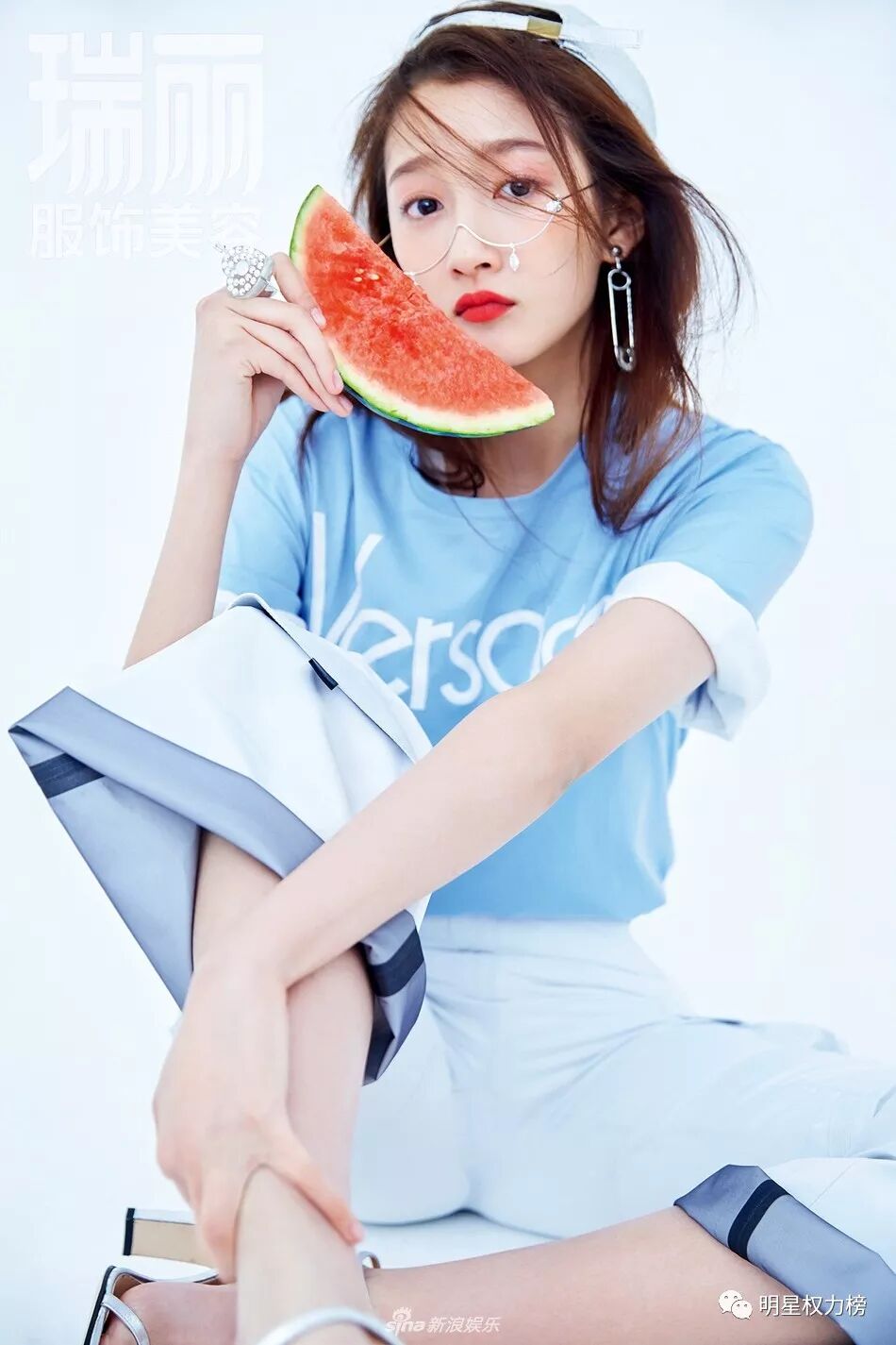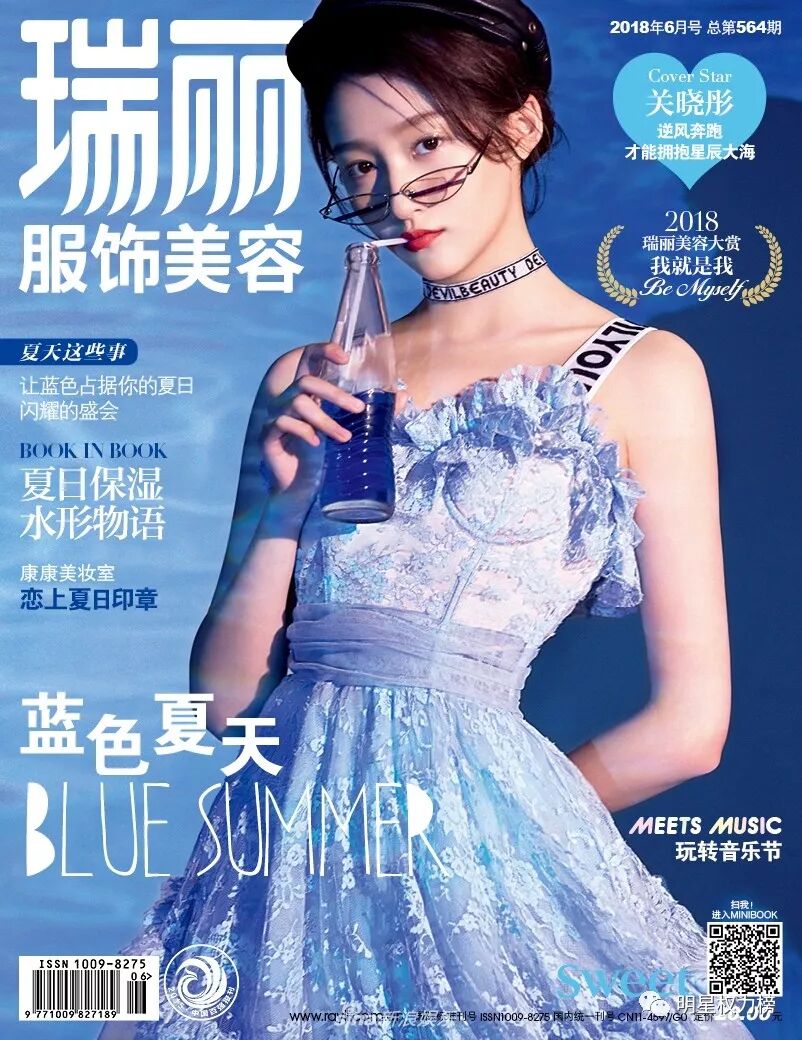▼ 关晓彤登某杂志封面,少女风大片于近日曝光。关晓彤置身蓝色夏天之中,或轻吮可乐,或手拿鲜花,双眼晶莹,清爽袭人,满屏都是少女味。