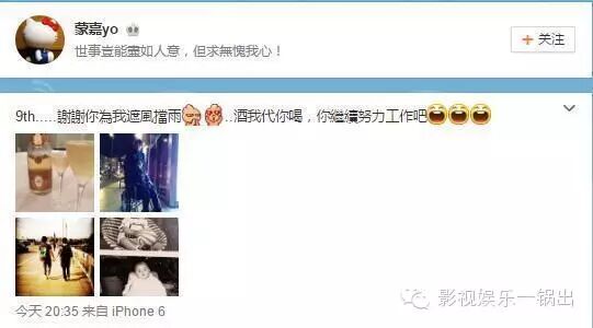 郑伊健蒙嘉慧:你为我挡风遮雨,我替你挡酒交际 影视娱乐一锅出 港台女星 2015-10-28 14:47:50 429 创作不易,用心坚持,欢迎请BaGua喝几杯爱心咖啡!打赏并支持本文 打赏并删除本文 郑伊健蒙嘉慧:你为我挡风遮雨,我替你挡酒交际小时候,狠迷过一段时间郑伊健,港台杂志叫他伊面。 《笑看风云》和陈松伶演的林贞烈,永恒经典《古惑仔》《风云》和《暗战》系列电影。 当时对他的印象就是,长情痴情,对年长他的女友邵美琪,照顾有加。后来,二人分手后,还传出郑伊健一直在养邵美琪的消息。 中间的“双琪夺面”事件,跳出来个梁咏琪,也逃不过七年之庠。 好在双琪,现在各有归宿。看《极速前进》时发现,郑伊健的脾气真的是好。无论节目组怎么虐,把陈小春惹发飙了,他也还是帮着劝。 有人说男人脾气好一方面说明有涵养,反过来也代表着软弱,感情上尤其会优柔寡断。 这一点,真是要感谢蒙嘉慧,后来的调教。 二人从打羽毛球的球友,发展成恋人。 开始时低调,后来被媒体拍到了,索性也就不躲闪了。周末了,素颜一起骑单车约会 与郑伊健前两位女友相比,蒙嘉慧算不得醒目的漂亮,最多算是小家碧玉。娱妹妹对她的印象,还是在《烈火雄心2》里演方中信的老婆阿YAN,性格很好,对老公的情感出轨,采取的作法是分居,然后自我经济独立,重新吸引回老公。蒙嘉慧跟郑伊健性格很像,不急功近利,不争不抢 她从没有主动跟郑伊健要求过名分,对她来说,在他的古惑仔兄弟面前,她是正牌阿嫂就够了。(早前古惑仔五子重聚的演唱会上,两人充满爱的眼神) 这点大隐隐于市的大气,倒真有点江湖大哥陈浩南的正牌阿嫂范儿。 好在郑伊健终于在他们在一起的第7年迎娶蒙嘉慧过门 今天是他们在一起9周年纪念日。 从来很低调的二位,居然发微博温馨了一把。 有一张照片中是两人手牵手的背影,蒙嘉慧留言称:“9th……谢谢你为我遮风挡雨……酒我代你喝,你继续努力工作吧!”爱情不就是郑伊健、蒙嘉慧这样吗? 你为我挡风遮雨,我替你挡酒交际。携手共度余生! 创作不易,用心坚持,欢迎请BaGua喝几杯爱心咖啡!打赏并支持本文 打赏并删除本文 感谢您的支持鼓励,我会继续努力的!文章地址:用户邮箱:打赏金额:USDT 请输入数字点击”去打赏“,即可进行打赏支持本文章哦 About the Author 影视娱乐一锅出 功能介绍:这里有可口的娱乐资讯,美味的大咖佳肴,酸辣的独家点评,款款都是你的菜. Related Posts 【今日锅里有啥料】刘伟强张涵予朱亚文张天爱刘浩然出席《建军大业》首映礼 2017-08-01 16:40:37 【今日锅里有啥料】《你的名字我的姓氏》探班 杨玏否认春节遭催... 2017-02-15 16:46:16 【会心一笑】郑爽:我不会去祝张翰跟娜扎开房快乐 2016-07-13 16:46:58 【娱乐乌龙】李宇春颁奖典礼上被称“男歌手”(视频) 2016-03-25 14:47:34 精彩早知道:《山海经》将播 张翰亲吻娜扎自称“心无杂念... 2016-03-21 15:32:03 发表评论