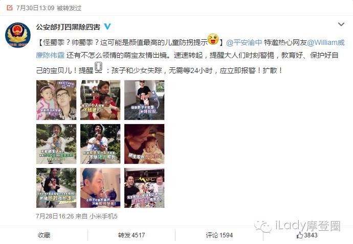 甚至,这位“人贩子”还因为太火而成功闯入警方的视线,被其官方微博做成了打拐友情提示: