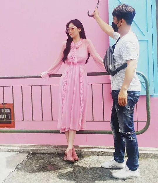 雪莉9日在自己的SNS上传了在新加坡拍摄画报时拍下的照片。