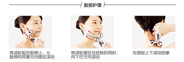 1,脸部:从下巴开始沿着脸部轮廓滚动到我们的耳根,鼻翼开始滚动至太阳穴,力度要把握好,不要用力过度哦。