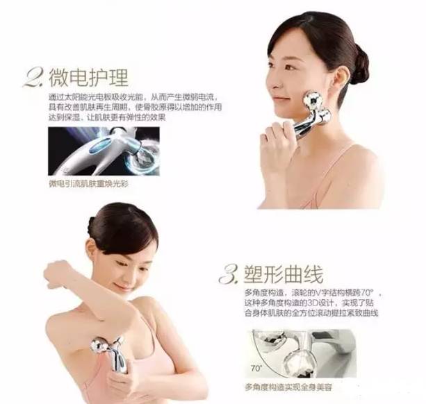 ReFa产生与生物电流相似的微电流,独特的Y字双球形设计,推拉皮肤运动按摩,以达到瘦脸瘦身、提拉紧致的美容效果。