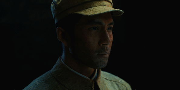 初登场,是他在列车上向连长报道,半身站在阴影里。