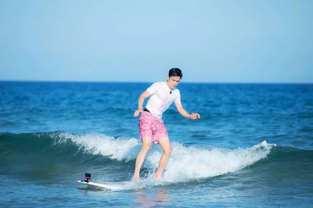 专心打磨身材和演技,也用力感受阳光和汗水。