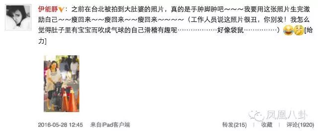 28日,晒出来自己被媒体拍到的大肚“丑照”,还说觉得肚子里有宝宝儿吹成气球的自己滑稽有趣,这样正能量的心态也是没谁了