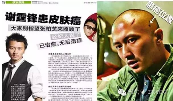 香港著名影星谢霆锋在拍摄电《十月围城》时,饰演一位剃了光头的角色。剃头之后,发现头上有一颗黑痣,但他没觉得奇怪。后来, 他再次剪短发的时候,发现黑痣变得很大!于是他去医院检查,医生告诉他,这不是一颗痣,而是一个黑色素瘤,是皮肤癌的一种。不过幸好他发现得早,可以用手术解决,后来谢霆锋做了手术,还缝了5针。