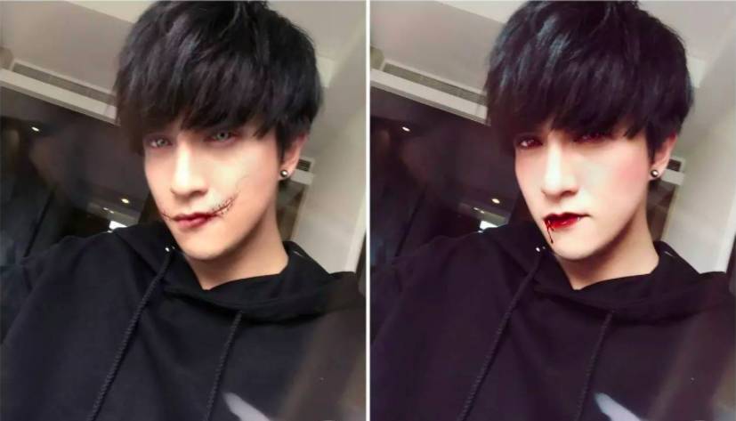 最近人气爆棚的鹿晗,其实也是个万圣节装扮能手~